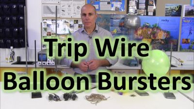 Trip Wire Balloon Bursters (Trip Balloons): Students have to design a contraption that automatically bursts a balloon when a person walks through a trip wire which triggers the contraption.